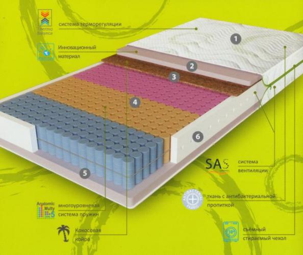Производитель - ЕММ; Ширина - 70 см; Ширина - 80 см; Ширина - 90 см; Ширина - 120 см; Ширина - 140 см; Ширина - 150 см; Ширина - 160 см; Ширина - 180 см; Длина - 190 см; Длина - 200 см; Тип - Anatomik Multy Zone5; Жесткость - двухсторонняя; Нагрузка на 1 место - 120 кг
