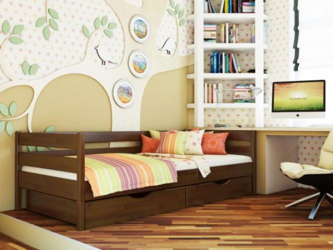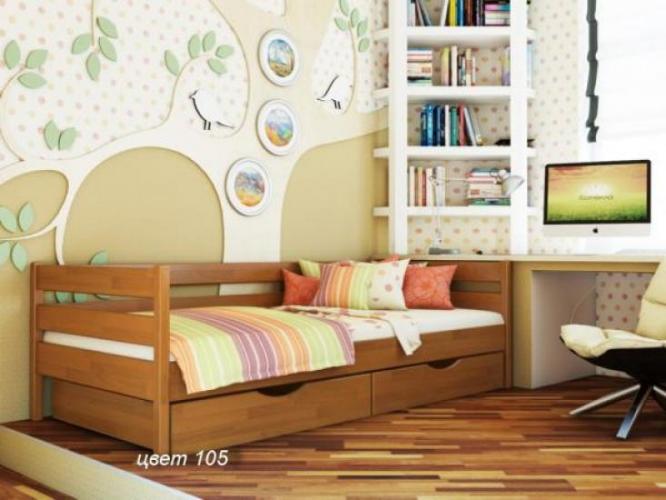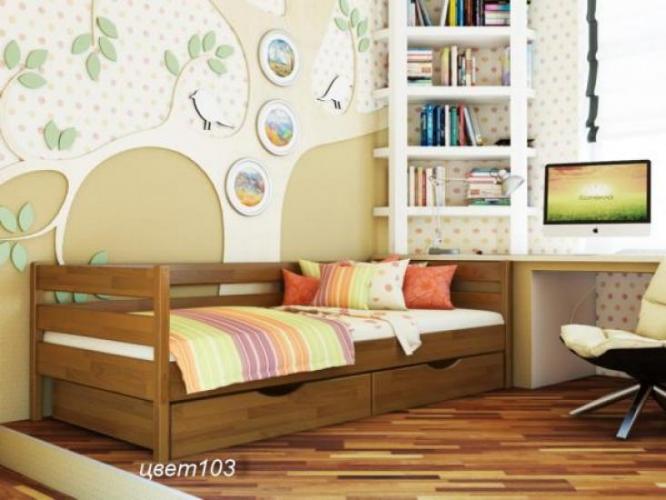 Модель выполнена из натурального дерева, представлена в различных оттенках и размерах,с шириной спального места 80 см, 90 см.