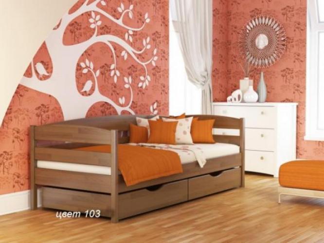 Модель выполнена из натурального дерева, представлена в различных оттенках и размерах,с шириной спального места 80 см, 90 см.
