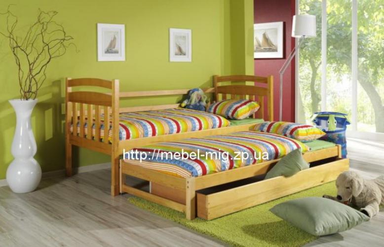 В сложенном виде-это обычная односпальная кровать, которая трансформируется в 2 полноценных спальных места.