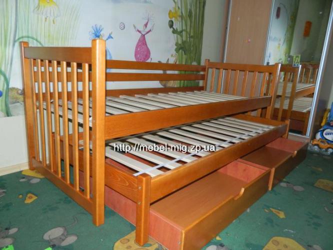 В сложенном виде-это обычная односпальная кровать, которая трансформируется в 2 полноценных спальных места.