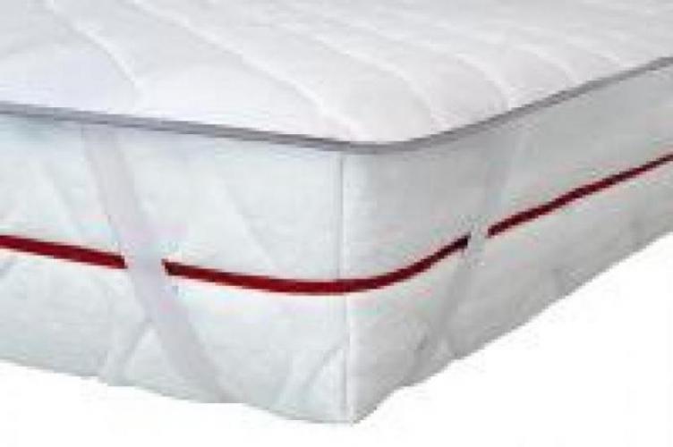 В качестве верхнего покрытия применен хлопок. Наматрасник простеган по всей площади, что предупреждает сминание наполнителей и обеспечивает его долговечность. Для того, что бы наматрасник сохранял свое положение, он снабжен специальными фиксаторами, расположенными по углам, при помощи которых, наматрасник крепится к основному матрасу.