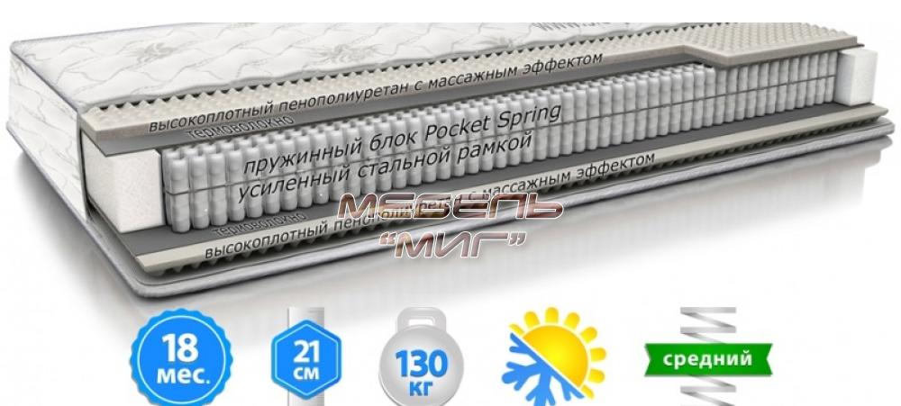 • Пружинная система «Pocket Spring» 272шт/м², скрепленная по периметру рамой из прокатной стали