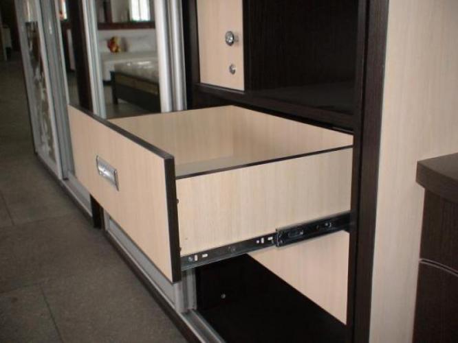 Шкаф купе из комбинированного ДСП( 32мм) кромка АВС. Алюминиевая раздвижная система "ALPINA."Мы выполняем заказы любой сложности.Цена расчитывается менеджером в зависимости от сложности шкафа,наполнения, цвета и толщины ДСП и размера шкафа.