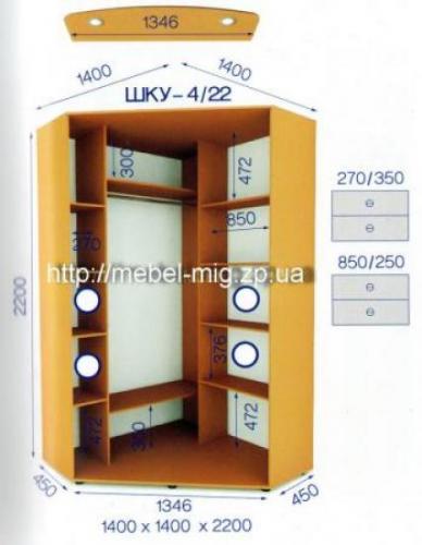 Главная \ Шкафы купе \ Угловые шкафы-купе \ Шкаф-купе 1400х1400х2200 Цена 2904.00гр